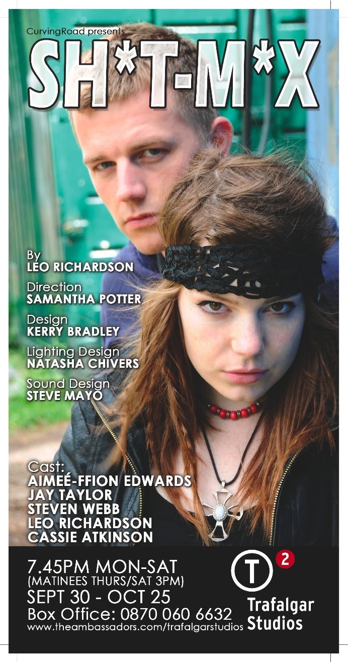 On September 30, 2008, CurvingRoad opened it’s biggest production to date, the play Sh*t–M*x by Leo Richardson. Perhaps you remember? It ran to great reviews and cheering audiences for three weeks in London’s West End Theatre, The Trafalgar Studio. This was Leo’s first play. Although he had trained as an actor, he had no professional training as a writer. But talent will out. Here was the blurb we ran on all the pr: