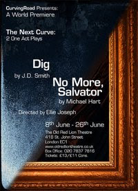 I am happy to say that CurvingRoad’s new playwrights, J.D Smith and Michael Hart, understand this. When asked to do rewrites they have each said, “yes, of course.” And now that the rewrites are done, they are sitting in Washington and Edinburgh (respectively), preparing to do an occasional promotional piece or interview (if we’re all lucky and the pr firm can sell the idea), and then book their flights to London. June 8 is sooner than you think. Here’s our new flyer to prove it: