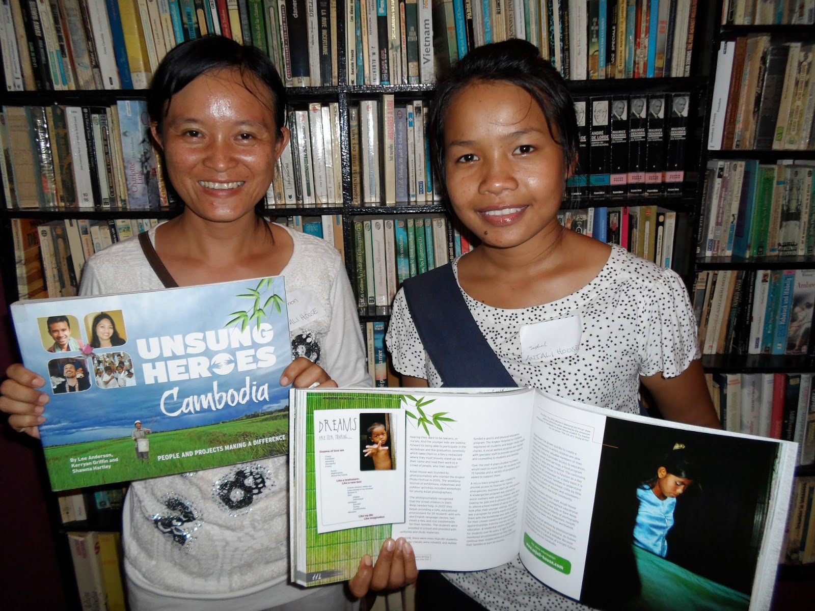 Either way, these three women are no joke and they have, out of the goodness of their huge hearts, taken it upon themselves to create a book highlighting some of the charities and NGO’s doing good works in the many impoverished corners of Cambodia. They have called it Unsung Heroes, and, I’m honoured to say, they have included a story about Anjali House, my workshop, and me. The book was launched a few days ago in Monument Books of Phnom Penh to a large crowd of NGO workers and well-wishers. You can read about it in the Phnom Penh Post article here.